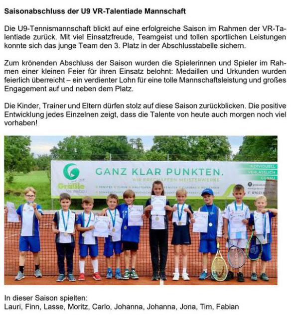 Trotz der Niederlage am Ende von 10:17 zeigte die Mannschaft der SPG Albershausen/Schlierbach viel Kampfgeist und Fairness. Für alle Kinder war es eine wichtige Spielerfahrung und ein weiterer Schritt in ihrer sportlichen Entwicklung. Der TC B.-W. Eislingen präsentierte sich als starker, aber fairer Gegner – herzlichen Glückwunsch zum Sieg!